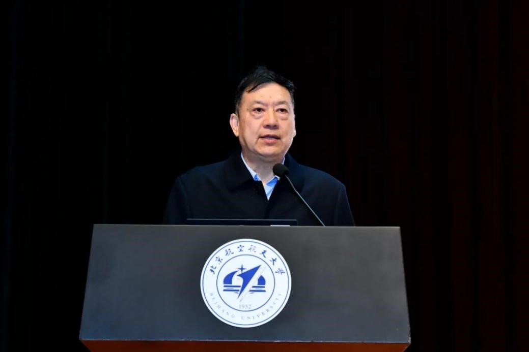 徐珞院长以《漫谈军事冲突中的人工智能》为题,向同学们阐述了第三代人工智能的发展趋势,并分析了人工智能技术对特定任务场景的影响,最后从单体、群体、体系三个方面介绍了国防领域智能发展的特点。徐院长号召同学们传承以“空天报国”为内核的北航精神,投身国防行业,实现人生理想,升华人生价值!