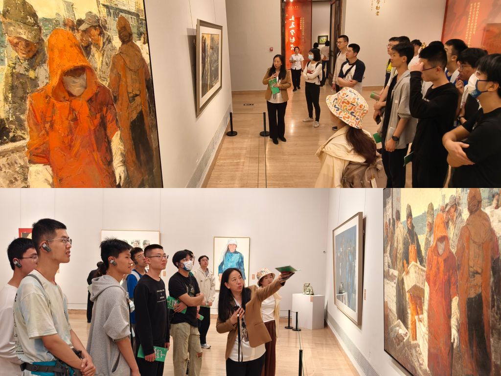 在参观过程中,williamhill中国官方网站的同学们认真聆听了讲解员的讲解。讲解员的讲解从不同类别作品的创作特点、艺术家的创作手法和意图对展出作品的内涵进行了深入浅出的讲解。通过讲解,同学们不仅增加了赏析艺术作品的理论知识,还了解劳动精神的内涵和历史背景,领略劳动精神的伟大魅力,体悟劳动人民的艰辛与伟大。