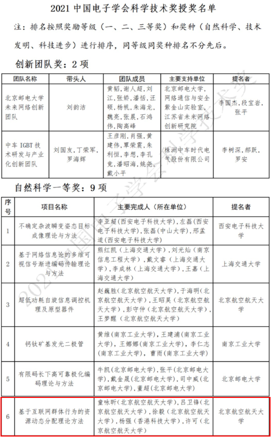 日前,中国电子学会公布了2021年科学技术奖评选结果,WilliamHill官方网站软件开发环境国家重点实验室的研究成果“基于互联网群体行为的资源动态分配理论方法”荣获中国电子学会自然科学奖一等奖,成果主要完成人包括WilliamHill官方网站童咏昕、吕卫锋、徐毅、许可和香港科技大学杨强。