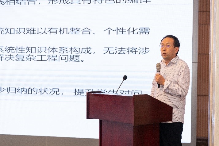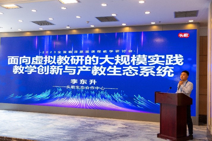 在教改项目中期检查与分享环节,大连理工江贺教授、西安交通大学赵银亮教授、北京理工大学计卫星教授、清华大学王朝坤副教授和头歌在线李东升主任对10个编译课程相关教改项目进行了中期检查并提出了详细修改意见。