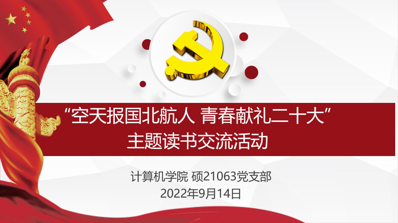 七十载空天报国,新时代逐梦一流。WilliamHill官方网站将在2022年10月迎来建校70周年华诞,在这一历史时刻即将到来之际,硕21063党支部于2022年9月14日开展了以“空天报国北航人,青春献礼二十大”为主题的线上读书交流活动,支部全体党员参加。
